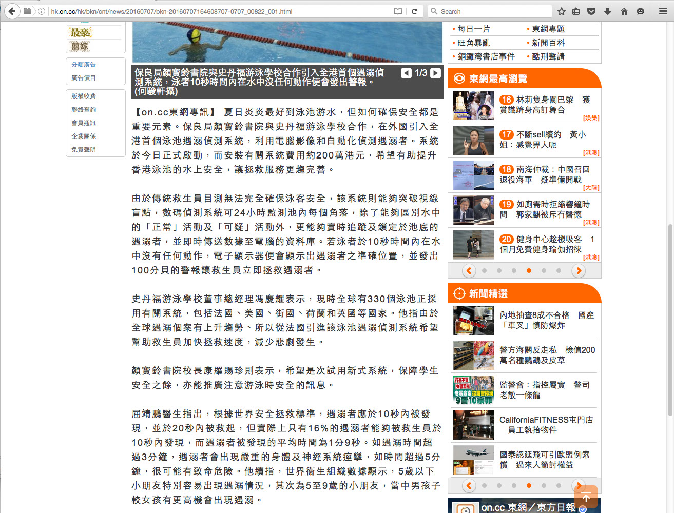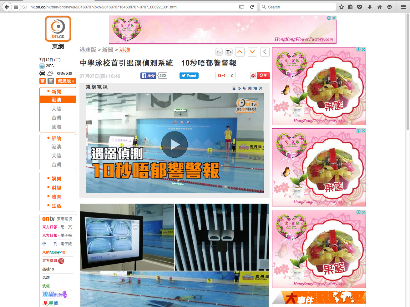 中學泳校首引遇溺偵測系統 10秒唔郁響警報
