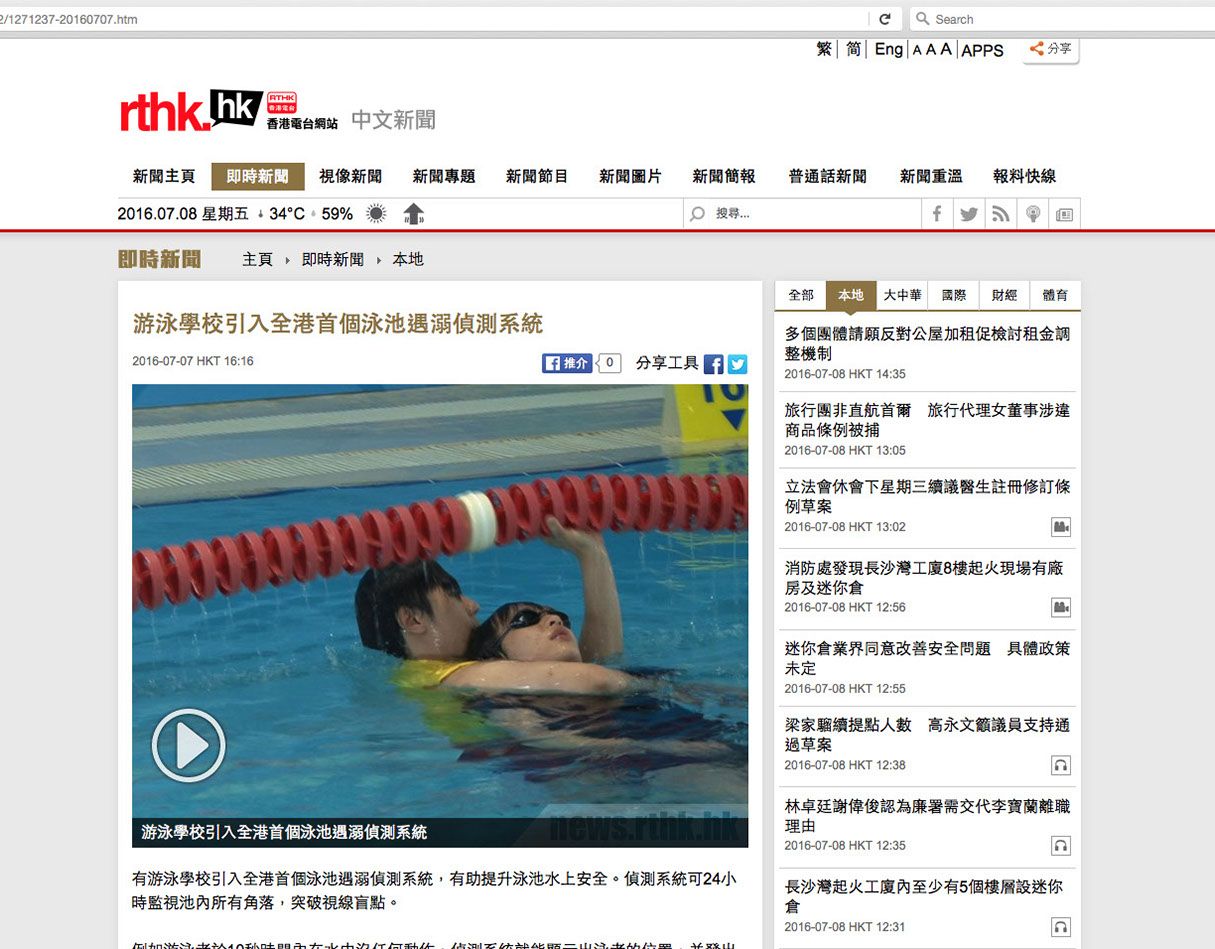 首個泳池遇溺偵測 10秒不動即響