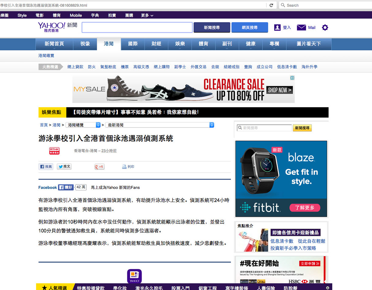 游泳學校引入全港首個泳池遇溺偵測系統