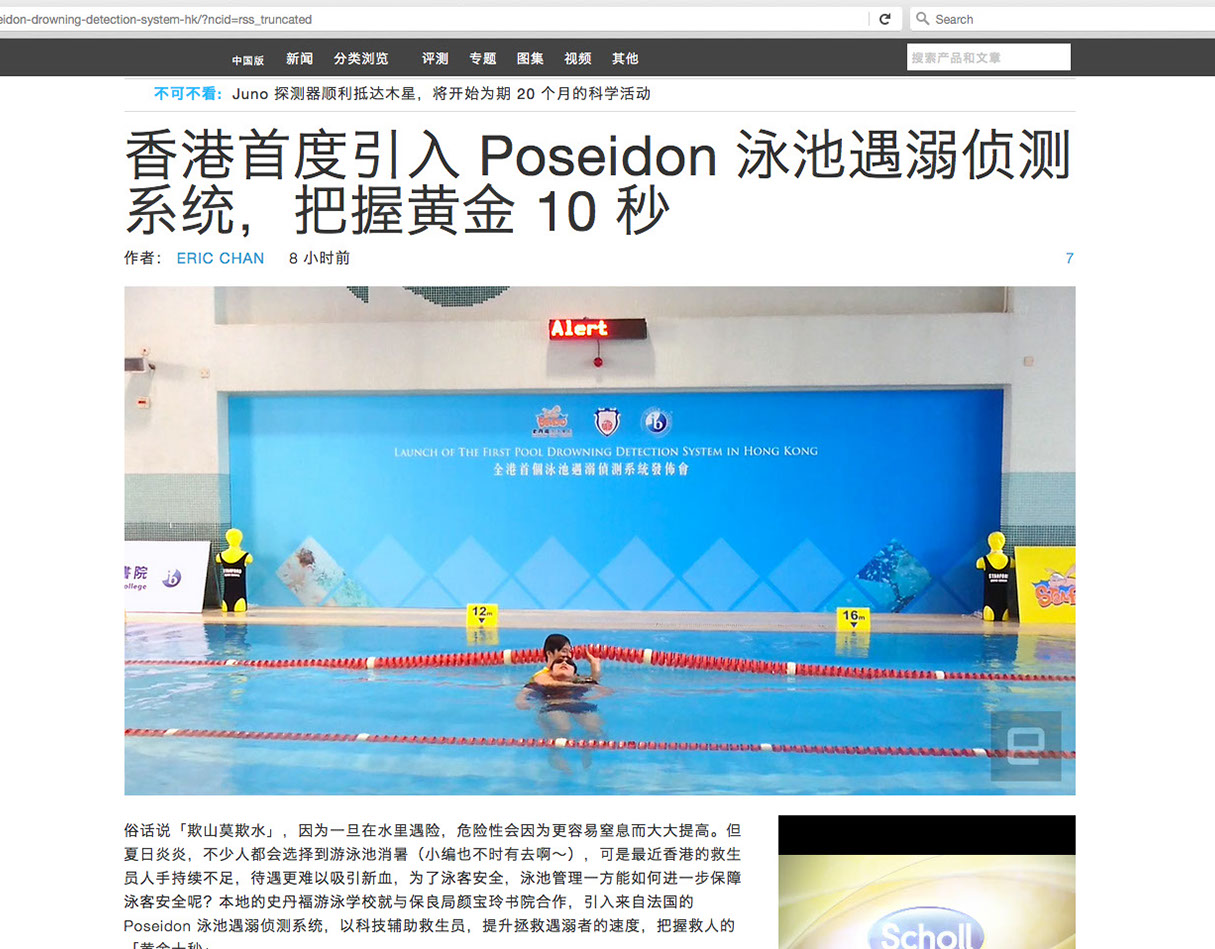香港首度引入Poseidon泳池遇溺偵測系統 把握黃金10秒